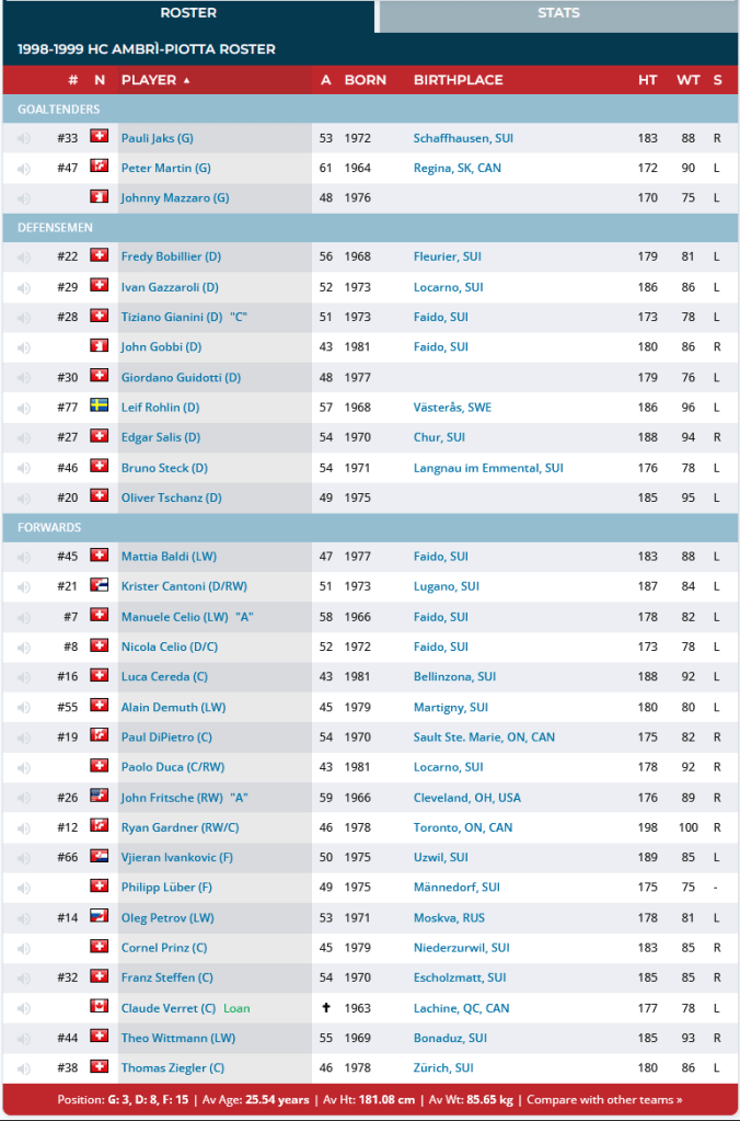 Es mag heute schwer vorstellbar sein, doch Ende der 90er-Jahre war Ambri ein Spitzenteam mit Titelambitionen. Im Streben um meisterlichen Ruhm leistete man sich eine Mannschaft, die man sich eigentlich nicht leisten konnte. Die Konsequenzen wogen später schwer, doch darum soll es hier nicht gehen.